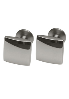 A pair of titanium cushion shaped square cufflinks carved from a solid bar, no moving parts. Polished finish.